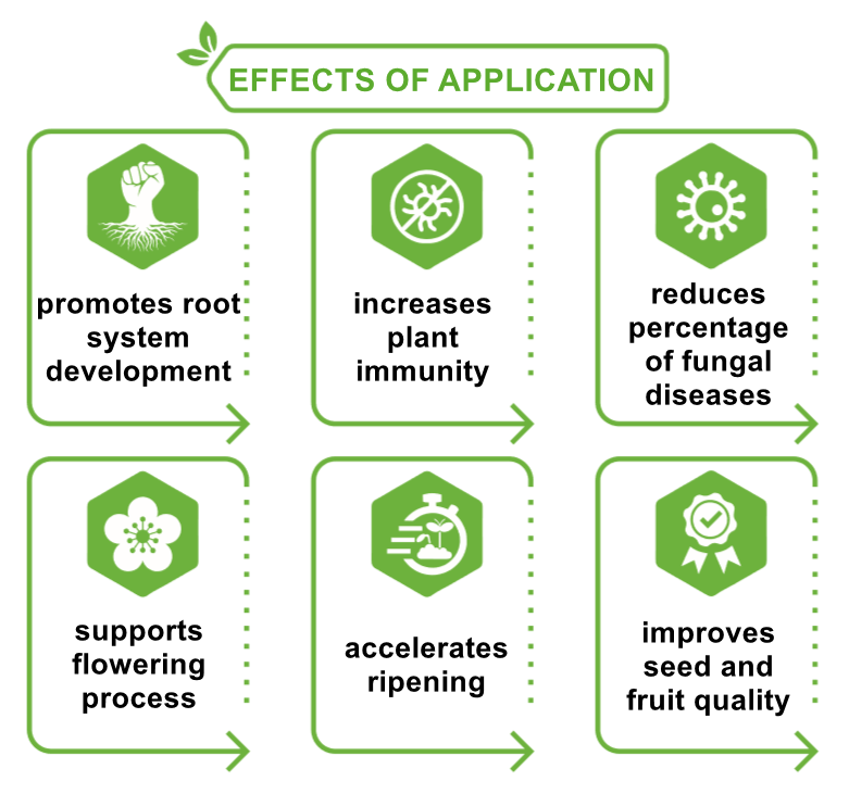 - improves quality of seeds and fruits.