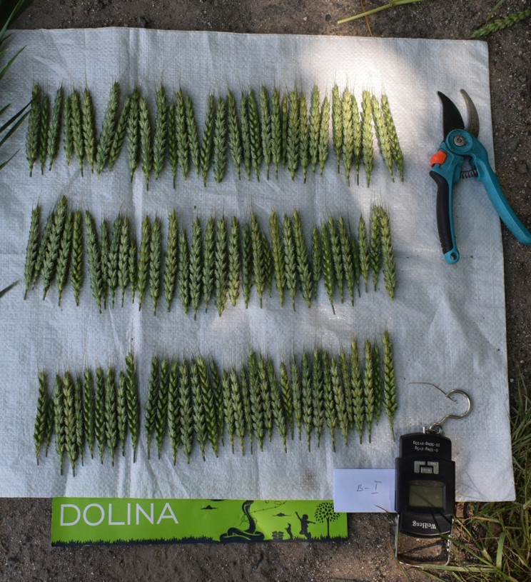 Маса одного колоса (дослід): 2,5 г (B-I) та 2,5 г (B-II).