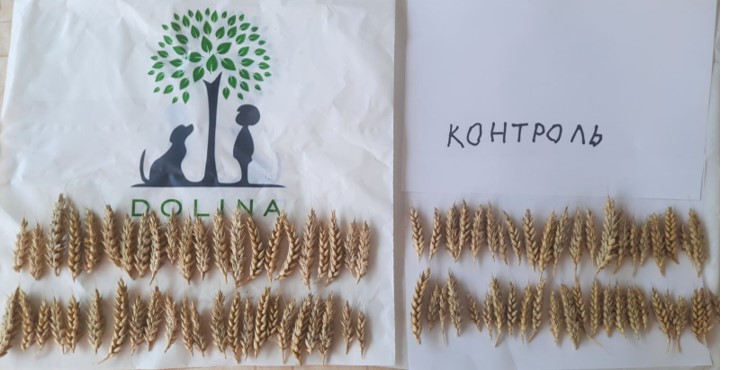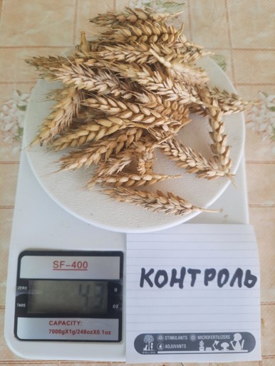 Маса: 43 г (контроль) та 65 г (дослід). Надбавка по вазі колосів +50 %.