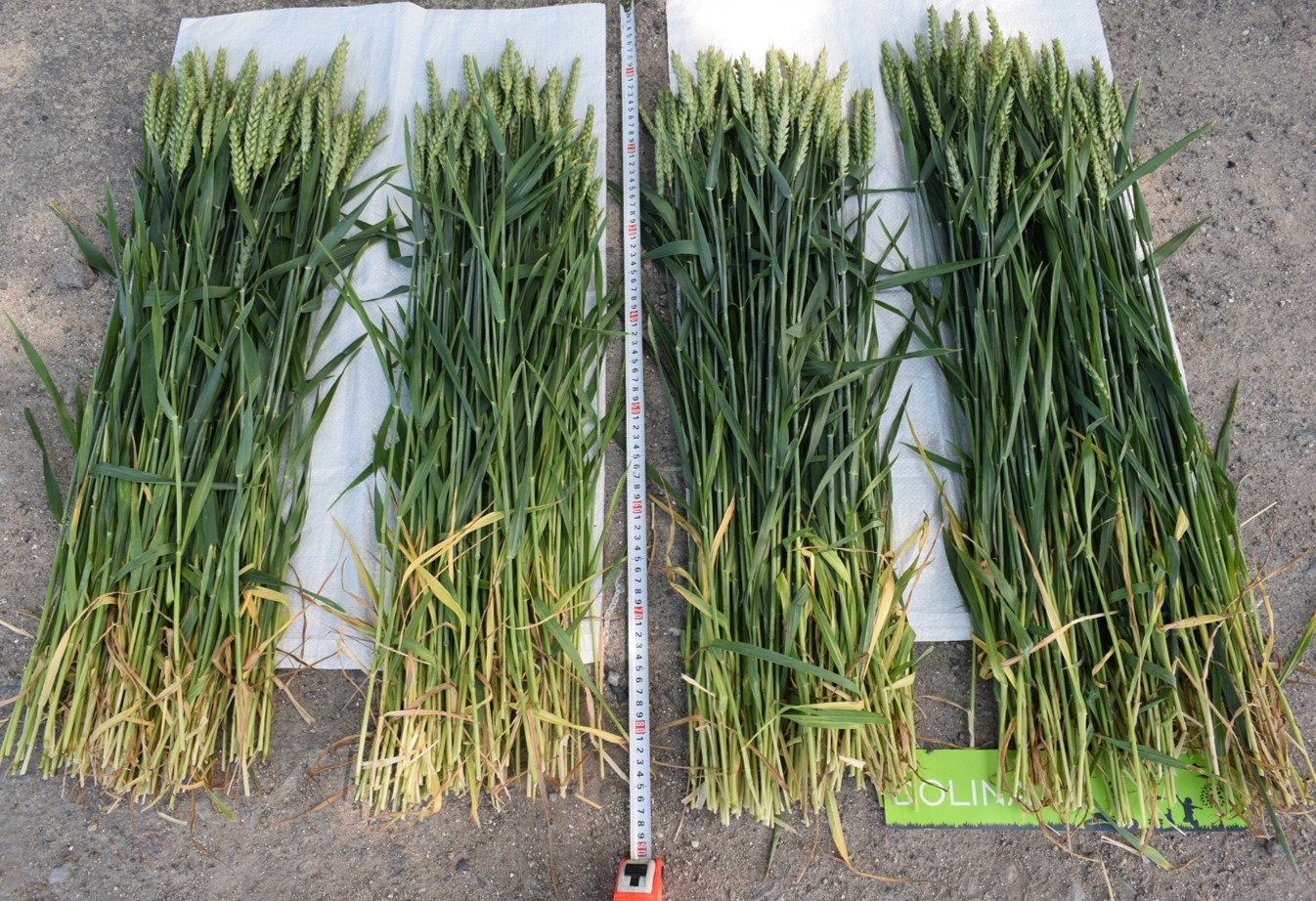 Середня висота пшениці в обох варіантах (контроль, дослід): дослід дещо вищий за контроль.