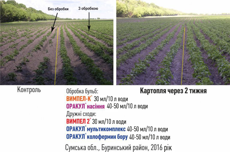 - бульби будуть більшими та смачнішими за необроблені препаратами;