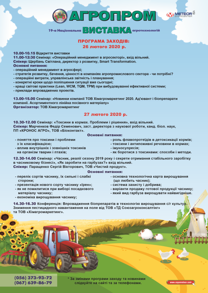Предлагаем посетить корпоративный стенд группы компаний «Долина» на 19-ой национальной выставке агротехнологий «Агропром-Днепр 2020», которая проходит 26 — 28 февраля 2020 года в городе Днепр.