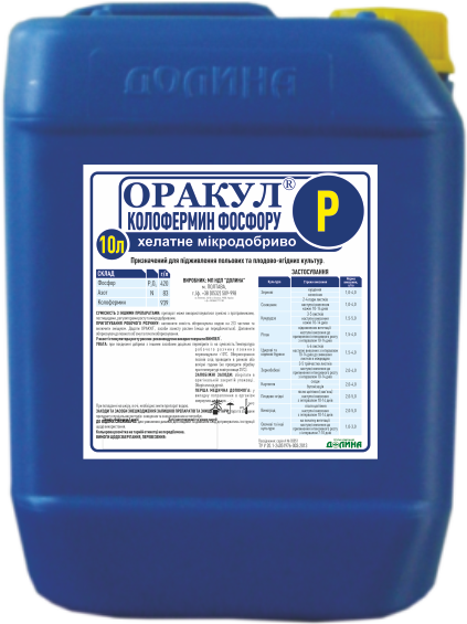 ОРАКУЛ® колофермин фосфора предназначен для подкормки полевых культур и многолетних насаждений. Особенно в начале вегетации, когда возникает наибольшая потребность в фосфоре у растений. Фосфор в удобрении находится в органичной легкоусвояемой форме.