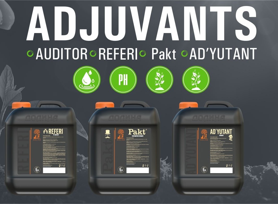 Компания DOLINA предлагает вашему вниманию линейку новых продуктов-помощников фермеров и сельхозпроизводителей: умягчитель воды с функцией pH-корректора AUDITOR®, стабилизатор рН воды REFERI®, суперсмачиватель-прилипатель Pakt®, прилипатель AD’YUTANT®, суперсмачиватель ФОРТЕЛЬ®.