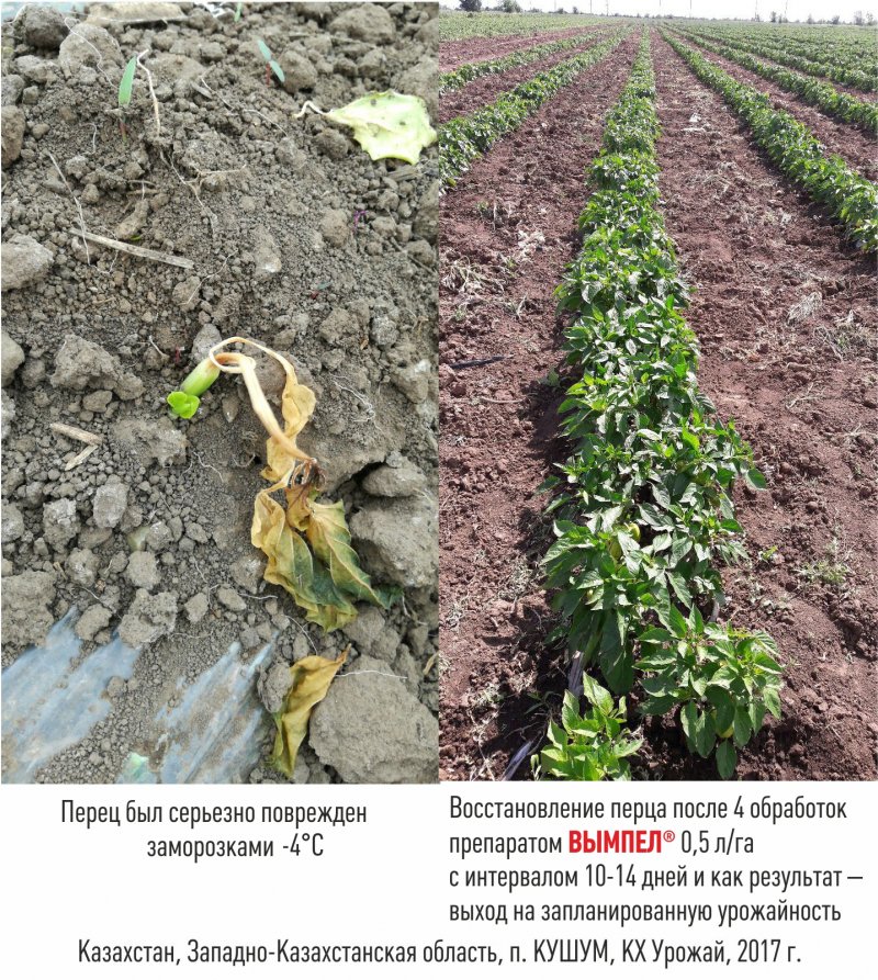 Стимулятор роста растений ВЫМПЕЛ® повышает качественные показатели продукции — классность пшеницы, белка в зерне, прочность волокна хлопка, содержание сахаров в плодах и ягодах, крахмала в клубнях, лежкость и вкусовые качества овощей, фруктов.