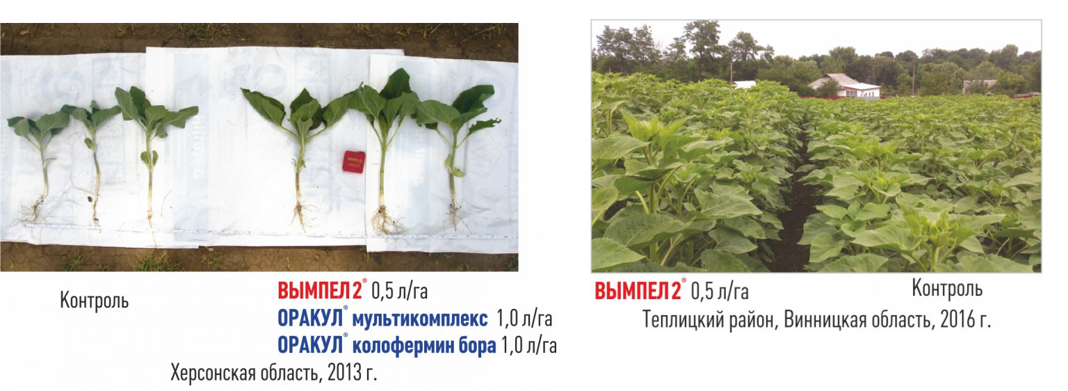 Стимулятор роста ВЫМПЕЛ 2® работает в синергии с микроудобрениями серии ОРАКУЛ®: хелатными микроудобрениями, которые компенсируют недостаток элементов и применяются на полевых, овощных и многолетних культурах.