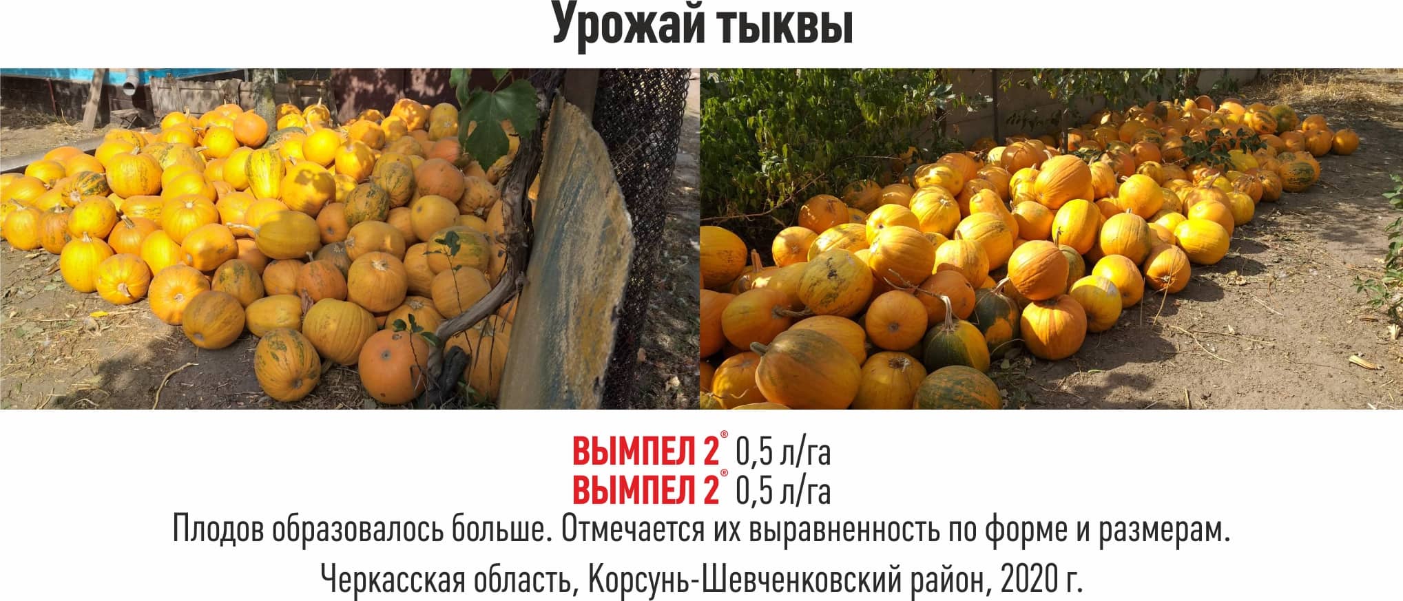 «Тыква отзывается очень хорошо на подкормки. Обязательно должна присутствовать нитроаммофоска под зимнюю вспашку, также хорошо идут микроэлементы и стимуляторы роста. Стимулятор роста — обязательно. Мы заметили, что очень хорошо отзывается тыква на стимуляторы роста от компании ДОЛИНА ВЫМПЕЛ 2®. Благодаря ему мы увидели: если есть какая-то стрессовая ситуация: будь то заморозки или перепад температуры, а для тыквы это — очень страшно, то мы увидели, что как антистрессант это очень хороший препарат. Это во-первых. Во-вторых, по ровности плодов. Если вы посмотрите на поле, более или менее однородные плоды. А если точнее, то хочу сказать, что я уже подсчитала, что это от 10 до 15% надбавки к общему результату по выходу семян. Поскольку мы уже выращиваем 5 лет, мы взяли себе целью, что 1000 кг с гектара сухих семян мы имеем. В этом году мы уже видим, что мы уже превосходим эту планку и здесь, возможно, уже будет тонна сто, а, возможно, и тонна двести. У нас был горький опыт прошлого года. По определенным причинам мы не успели закупить препарат ВЫМПЕЛ 2® от компании ДОЛИНА, поэтому в прошлом году мы не дотянули даже до тонны. 850 га мы взяли с га. И это, как считаю, такой показатель к тому, чтобы использовать этот препарат».